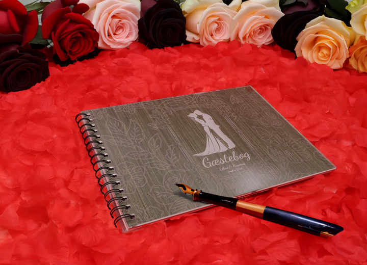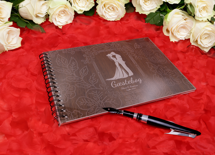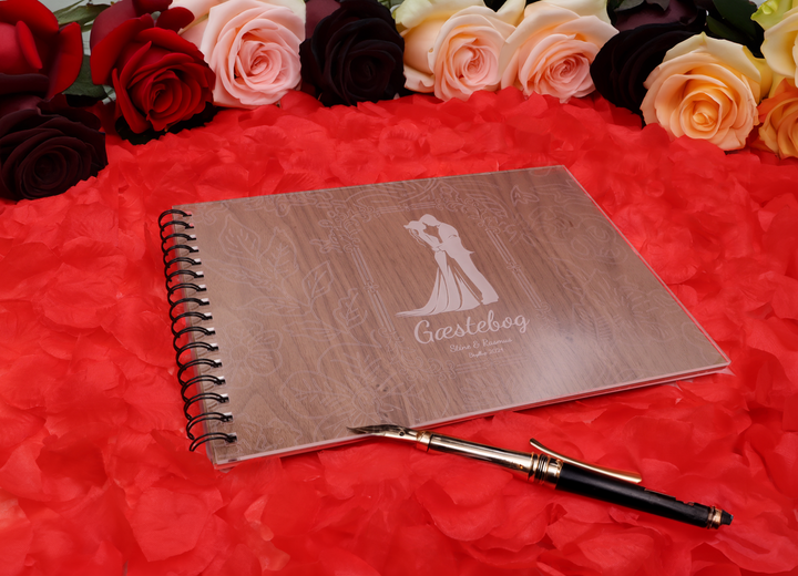 Lavet af højkvalitets akryl er denne gæstebog både holdbar og smuk. Den er nem at bruge og kan tilpasses med jeres navne, bryllupsdato eller andre personlige detaljer. Den er også nem at rengøre, så den forbliver perfekt som en del af jeres bryllupsminder.