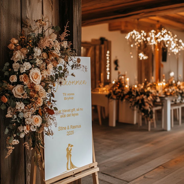 Ellie - Bryllups velkomst skilt i frostet akryl med gyldne bogstaver – Elegant personlig indgangsdekoration til jeres særlige dag